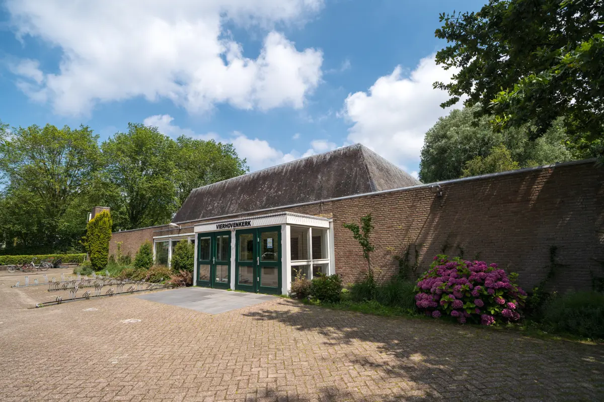 De volledig gelijkvloerse Vierhovenkerk aan de Obrechtstraat beschikt over een kerkzaal voor 305 personen, vijf multifunctionele zalen, een centrale hal en professionele keuken. Ruim eigen parkeerterrein aanwezig.