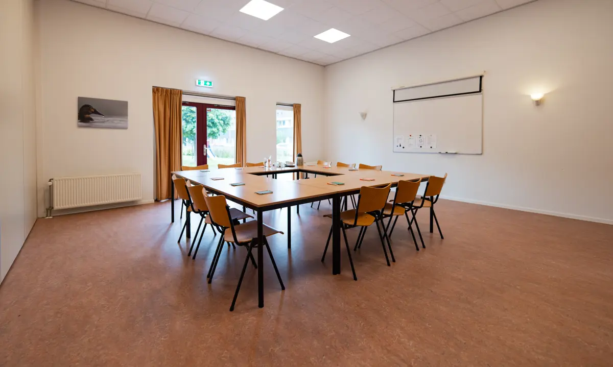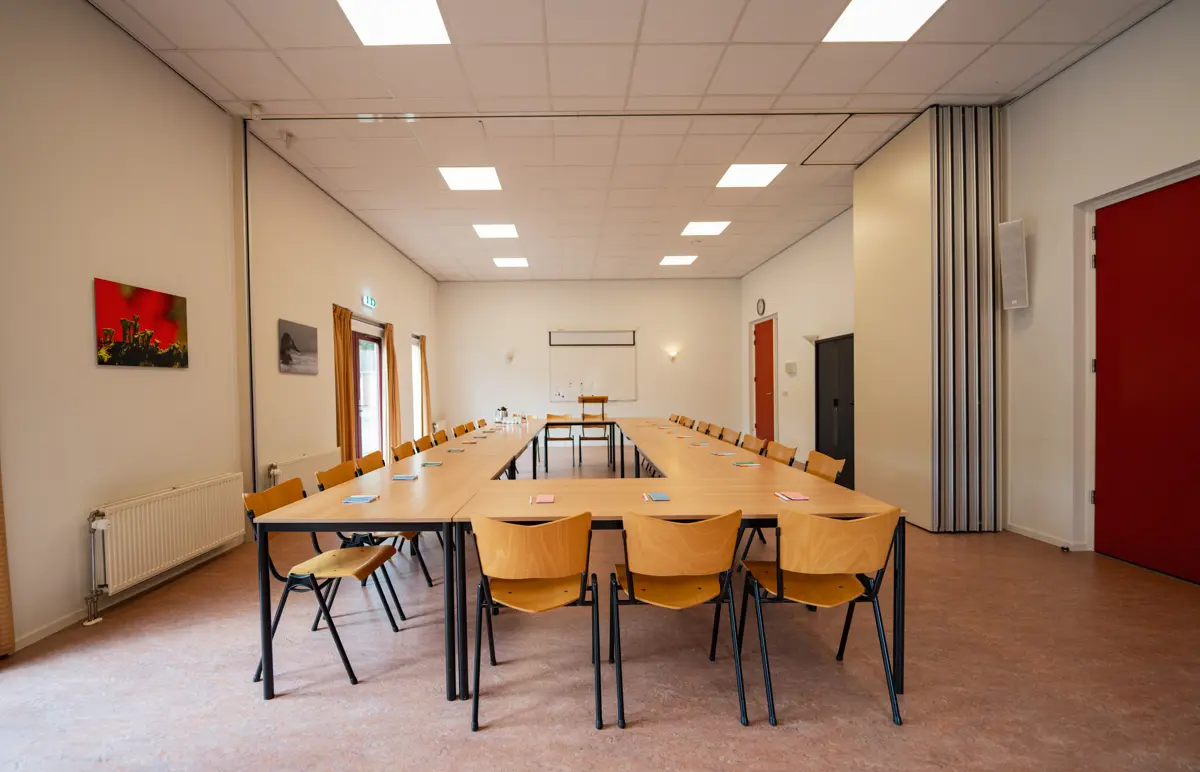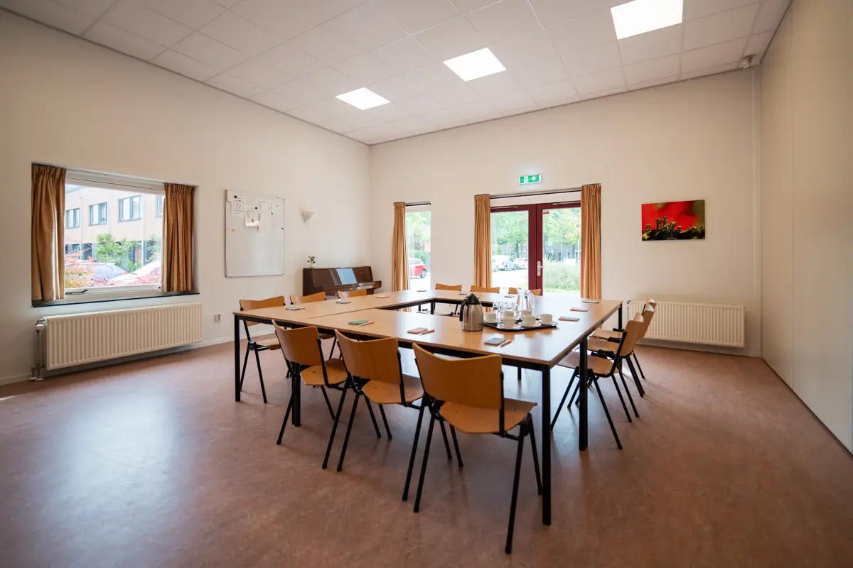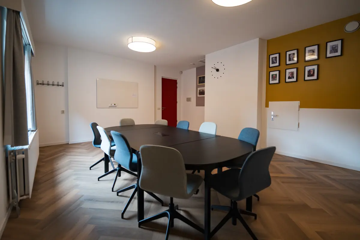 Professionele vergaderruimte met vaste grote vergadertafel voor bestuursvergaderingen. Rustige setting met wifi en extra faciliteiten op aanvraag.