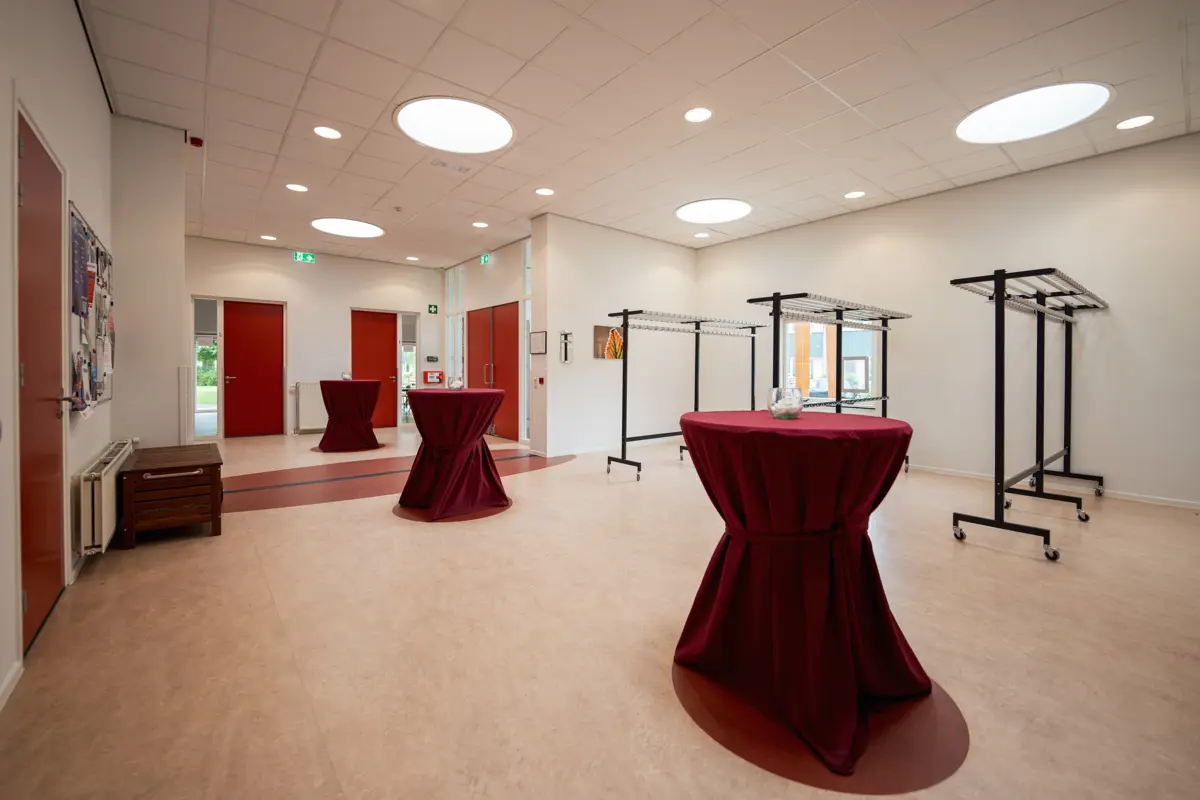Multifunctionele ruimte direct grenzend aan de keuken, perfect voor buffetten en recepties. Ook geschikt voor individuele muzieklessen met één instrument.