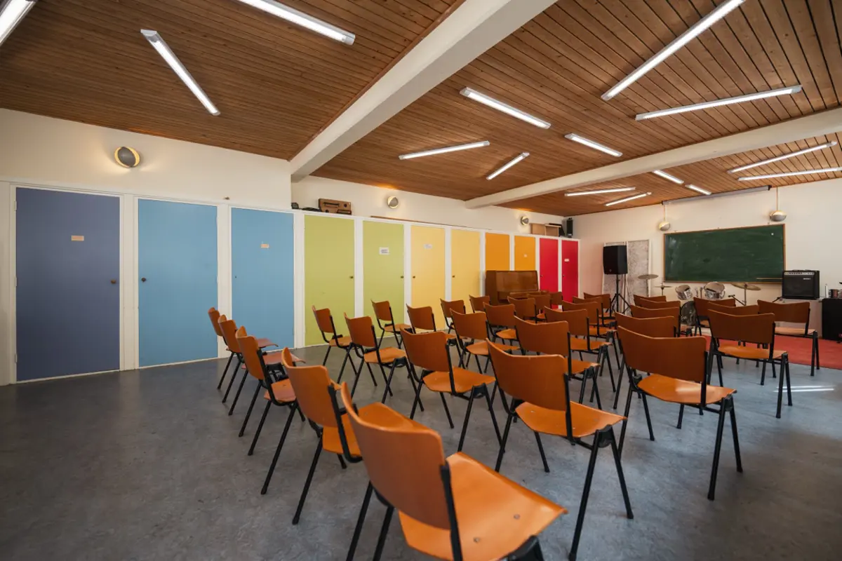 Ideaal voor VvE-vergaderingen, lezingen en workshops met flexibele opstelling van blok naar theater. Piano aanwezig, beamer en projectiescherm beschikbaar op aanvraag.