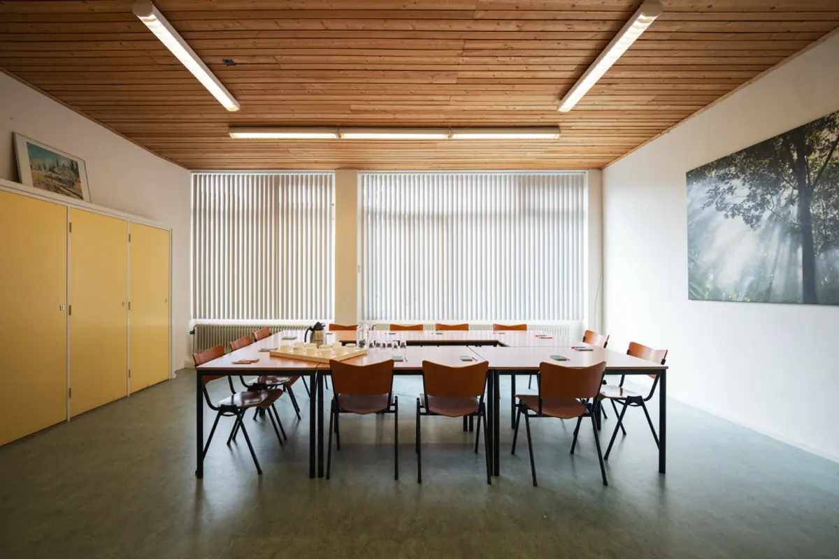 Praktische ruimte voor vergaderingen met beperkt aantal deelnemers, uit te breiden voor grotere groepen. WiFi standaard, losse beamer en projectiescherm beschikbaar op aanvraag.