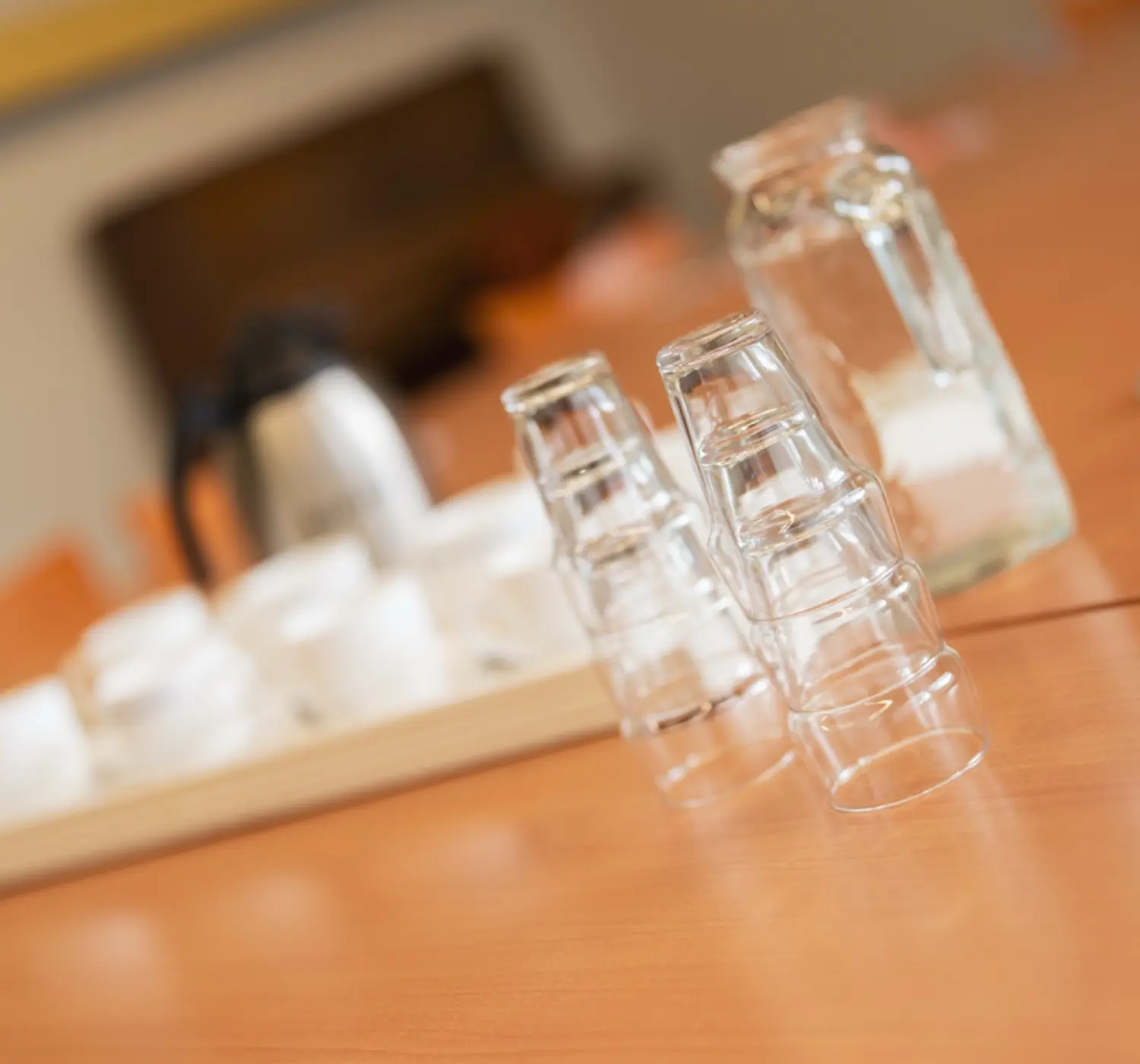 Standaard zaalopstelling: blokopstelling voor vergaderingen tot 12 personen. In theateropstelling uit te breiden naar maximaal 25 personen.