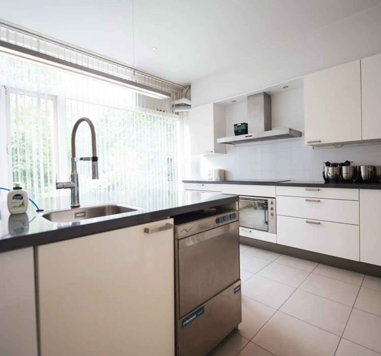 Deze beschikt over diverse apparatuur: o.a. snelvaatwasser, fornuis met oven, koffie automaat e.d.