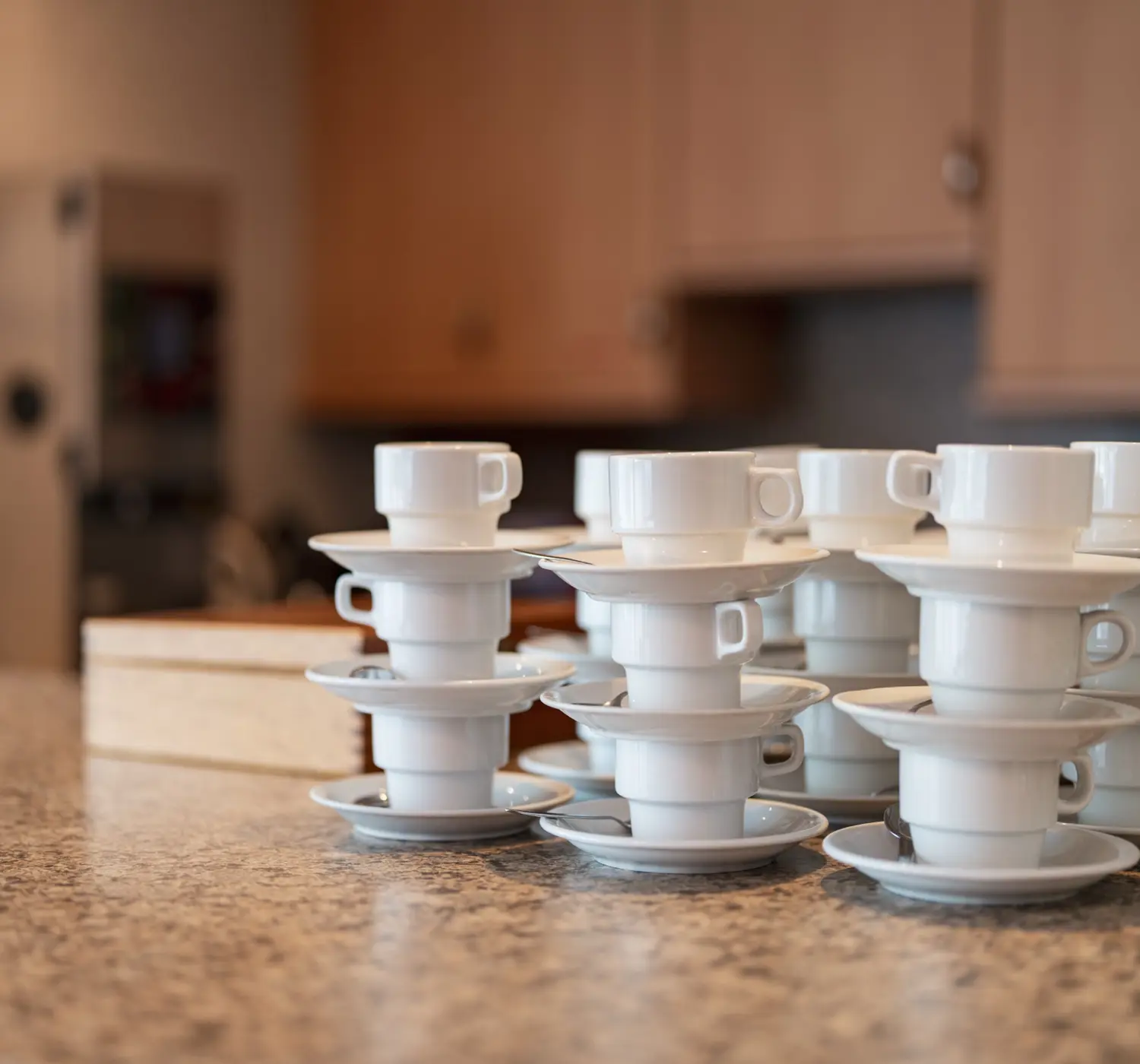 Professioneel uitgeruste keuken met gasfornuis, koelkast, koffie/thee automaat, snelvaatwasser en gewone vaatwasser. Perfect voor uitgifte consumpties, maaltijden en hapjes bij alle reserveringen.